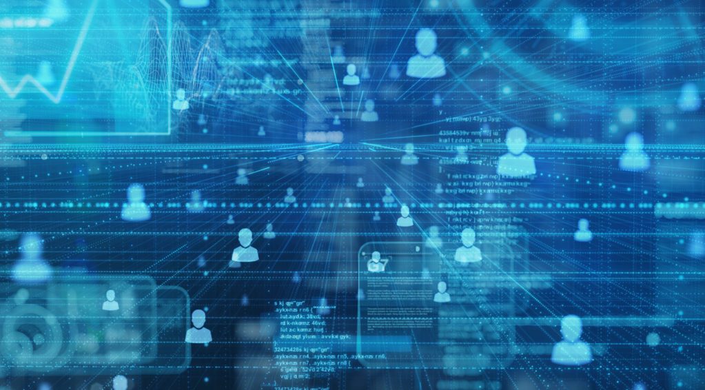 IMAGE: (L) Abstract chat icons over a digital surface (via Getty Images); (M) Visualization of an online network (via Getty Images); (R) Popular social media apps on an Apple iPhone (via Getty Images).