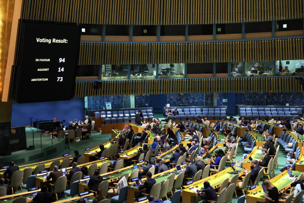 Permanent Representative of Russia to the United Nations Vasily Nebenzya speaks during a meeting of the General Assembly